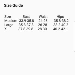 Classic mid-rise bikini bottoms with padded halter top. Front panel of the bottoms has runching to help flatten and these are full coverage on the front and back. Halter top ties at neck and you can adjust how much push-up it gives your chest. Please refer to size chart when purchasing. Medium is white, large is light blue, XL is sapphire blue.