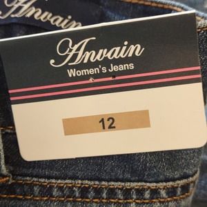 Slightly distressed front and back, stretchy soft material, 5 pocket style, belt loops, raw hen roll cuffs, button zip closure