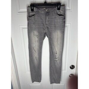 The product is a pair of Mid Rise Skinny Jeans in size 11, designed for junior women. These jeans are in a classic blue color and feature a sleek skinny style, perfect for achieving a modern and on-trend look. With a brand known for quality and a focus on a flattering fit, these jeans are sure to become a versatile staple in any woman's wardrobe.