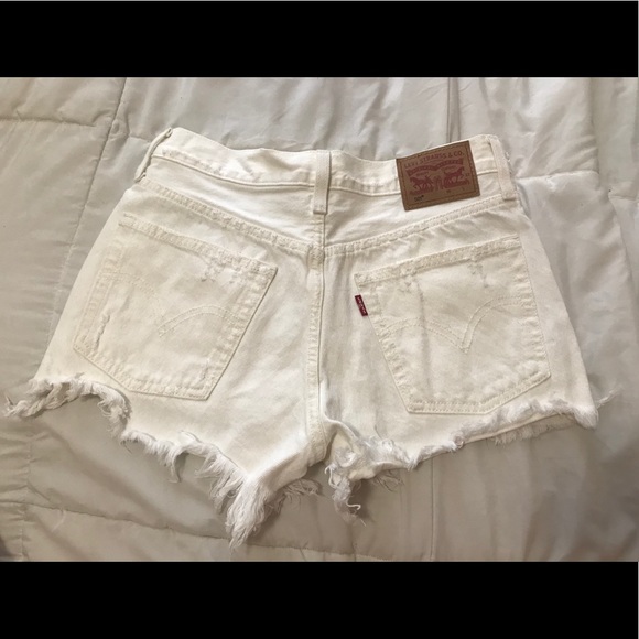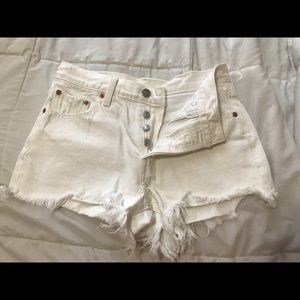 Mid Rise, button fly White colored shorts with raw hem. Great condition, no flaws