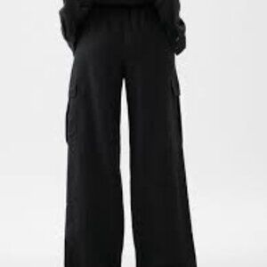 Mid Rise Linen-Cotton Pull-On Cargo Pants (black) NWT