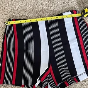 Mid rise shorts with black, red, and white stripes. Zipper on the side. Worn once!