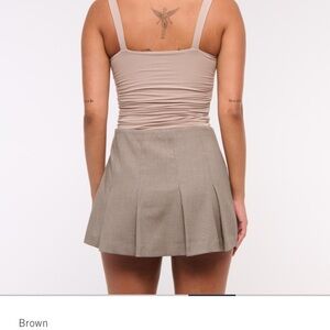 Mid rise mini skort in our midweight suiting fabric, featuring on-trend wide stitched pleating details, an elasticated waistband, belt loops, shorts lining for comfort and side zipper for a secure fit.