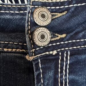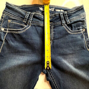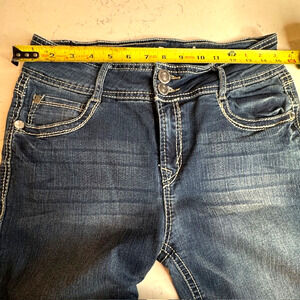Step back in time with these fabulous Wallflower Y2K mid-rise embellished bootcut jeans! Designed with a flattering heritage curvy fit with fading and whiskering , these size 11 jeans are perfect for accentuating your silhouette. The unique embellishments add a touch of sparkle and elevate basic jeans. Get ready to rock the Y2K style with confidence and flair!