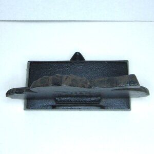 This cast iron hook by MCF will sit on edge of shelf, recommend for light to medium weight items. Would look nice in country or farmhouse style kitchen for a ladle or other kitchen tool. Would also work well as Christmas stocking holder. I have several of these listed if would like to bundle one with this.