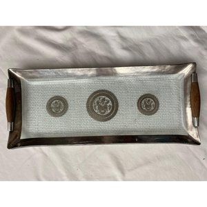 Beautiful MID CENTURY tray signed Georges Briard. SIlver details and teak handles. Exc cond.