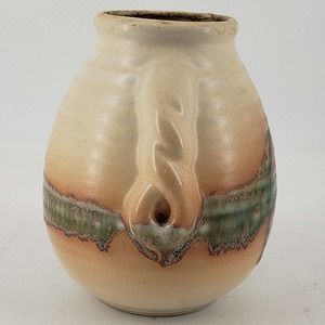 Mid century boho style Studio art small ceramic bud vase w rope style handles