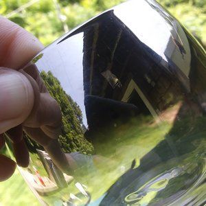 Mid century modern silver fade rolly polly glasses. Soda can in pics to help with size visualization. Holds one cup of liquid easily, last picture shows one cup of water inside the glass. Good used condition no cracks or chips there are scratches consistent with use and age . There is a carrier and another set of four rolly polly silver fade glasses for sale . Mid century modern, silver fade, low ball, barware. I can not sell the set together because they will weigh over 10 pounds after packing material and boxes . If you look at set B the last 7 pictures show the scratches better. Thank you Questions are always welcome