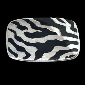 Mid century Meka Denmark sterling silver black enamel zebra design pin