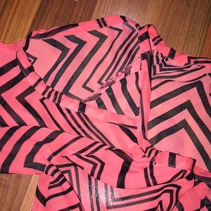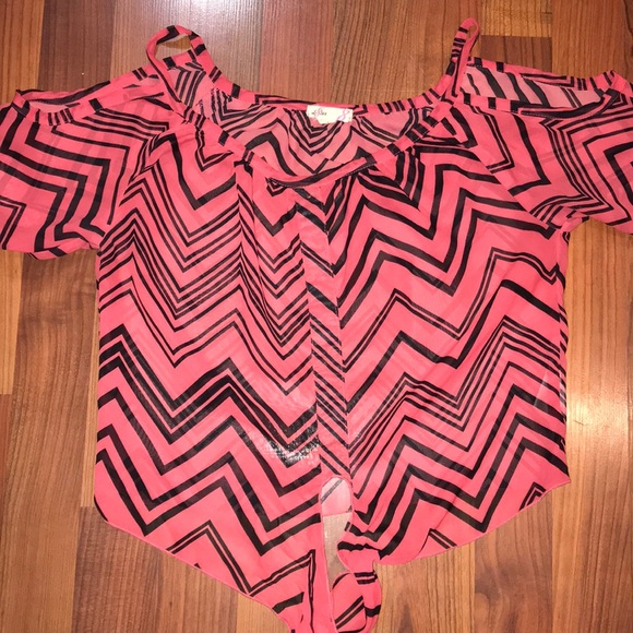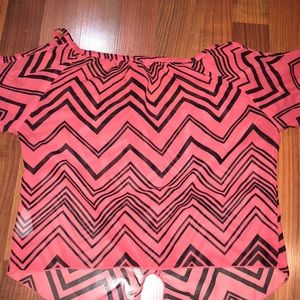 Pink and black mid drift top. Open shoulders and ties on the bottom
