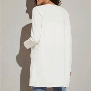 Mid length coat pockets business minimalist WHITE