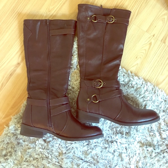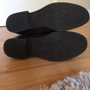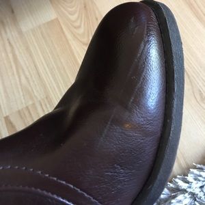Dark Mahogany colored zip-up boots. Like new, except for slight scuff on top of left boot.