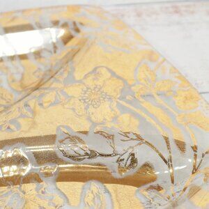 Mid-Century 22K Gold Leaf Divided Glass Tray Snack Platter Trinket Catch-All
