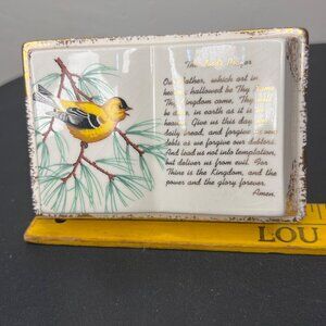 Vintage Mid-Century American Goldfinch Bird Lord's Prayer Book Ceramic Planter