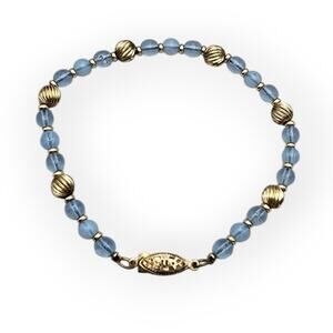 Mid-Century Blue Glass Bead Bracelet with Gold Accents Fishhook Clasp