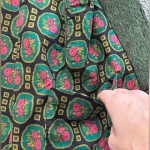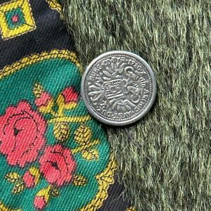 Most likely from the 60’s, possibly 50’s. Wool-blend deep green cape with mohair-like texture on exterior and exquisite floral lining. Intricate details on even the silver buttons! Tag says size 10 but I’m not sure how that translates to modern day size US 10. Approx 21” at the bust and 28.5” length. No flaws noted. Rare, one of a kind piece!