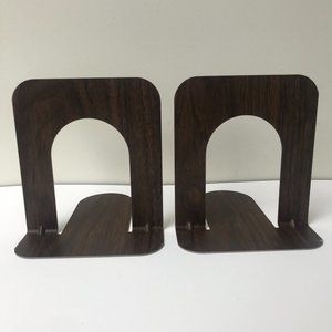 Mid-Century Faux Wood Grain Metal Industrial School Library Bookends Set of 2