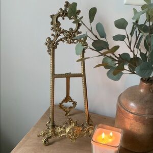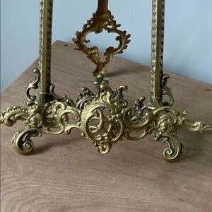 Mid-Century French Ornate Brass Tabletop Easel Accents Large 21” foldable gold