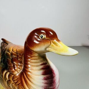Mid-Century Japanese Ceramic Duck Figurine 6" x 9 brown green