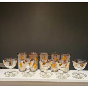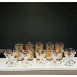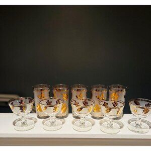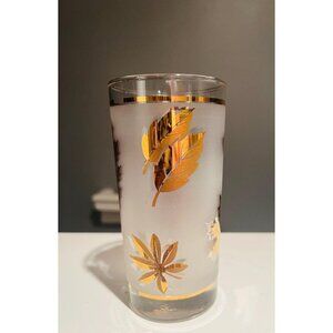 Mid-Century Libbey Gold Leaf Frosted Glasses Vintage Barware Tumblers & Goblets