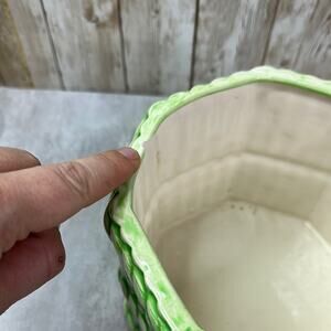 Mid-Century McCoy Bamboo Pottery Planter green white vintage 1970s