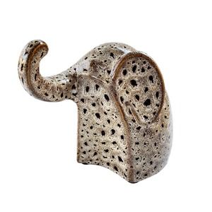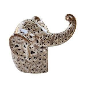 Mid-Century Modern BeigeLeopard Print Ceramic Elephant Sculpture Figurine