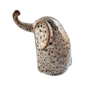 Mid-Century Modern Beige Leopard Print Ceramic Elephant Sculpture Figurine