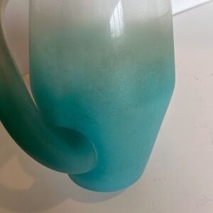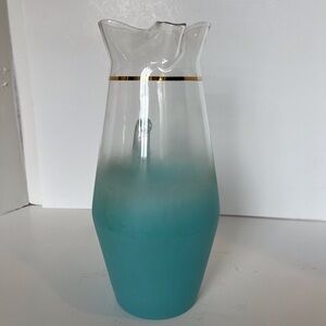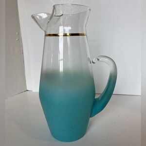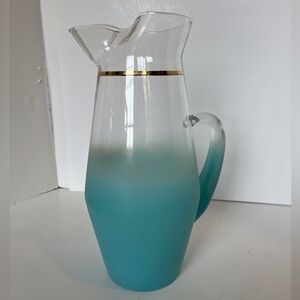 Mid-Century Modern Blendo Pitcher Frosted Blue/Aqua Color with Gold Trim