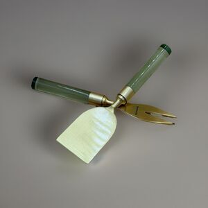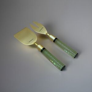 Mid-Century Modern Brass Cheese Server Set With Light Green Lucite Handles