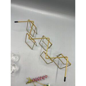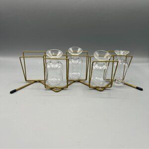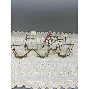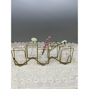 Mid-Century Modern Brass & Glass Geometric Bud Vase Set w 4 Vases