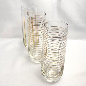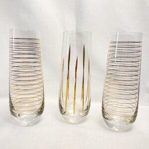 Mid-Century Modern Champagne Glass Flutes Gold & White Glassware Set of 3