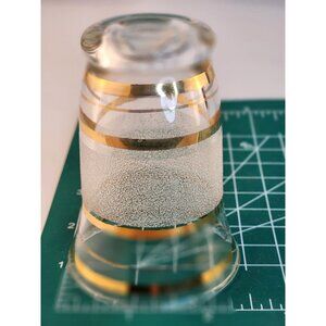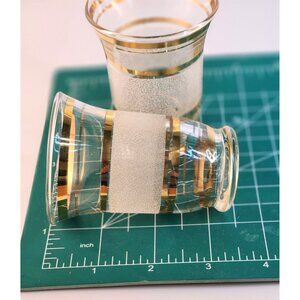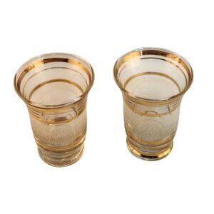 Mid-Century Modern Set Of 2 Frosted Glasses With Gold Stripes 3.25" Tall x 2.25"
