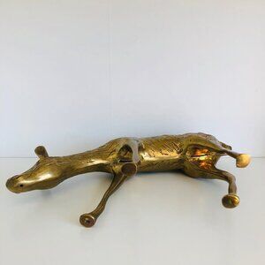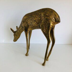 Mid-Century Modern Solid Brass Standing Doe Deer Sculpture Large Heavy