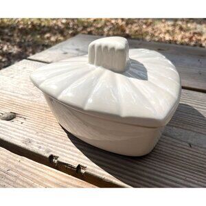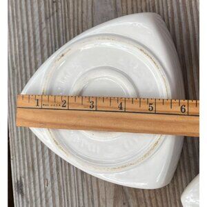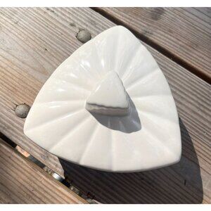 • Triangular shape with lid, cream colored
