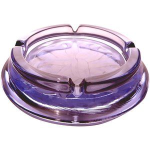 Mid-Century Neodymium Alexandrite Art Glass Ashtray Color-Change Engraved Floral