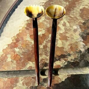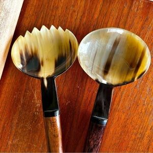 Unique mid-century spoon and fork serving set, Utensils, Salad Serving Set. I love how the 2 pieces vary in color. A great addition to your table setting.
