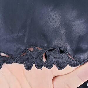 Mid-century Handmade 100% Silk Black Wide Leg Trouser Pants featuring pleated waistband and hem details. Back left side closure, with zipper and single button. Extra button for minor waist adjustment. No pockets.