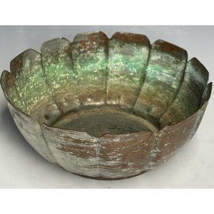 Mid-Century Silvered Copper United Arab Republic Middle Eastern Incised Bowl