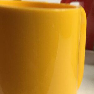 In good preowned condition. Set shows wear that is consistent with age and use. Some scratching and scuffing as to be expected. A few cups had a sticker price tag on them and have remnants of a sticky film. I tried my best to remove it. This is most prominent on the yellow cup.