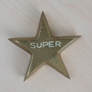 Add a touch of vintage charm to your desk with this unique Super Star brass paperweight!