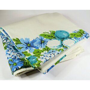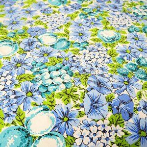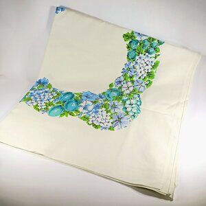Mid-Century Tablecloth, Morning Glories & Fruit, Blue Green Aqua, 53x66