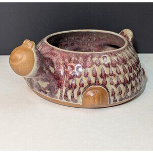 This is a beautiful art pottery Turtle planter with tan and purplish-brown glaze, made by 1960's pottery artist David Stewart. This lovely little Lions Valley Stoneware turtle is in wonderful condition, with no chips, cracks or crazing. His smiling face is utterly irresistible. Would make a lovely addition to any art pottery collection!