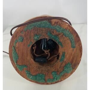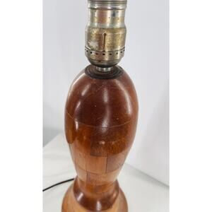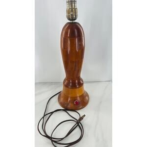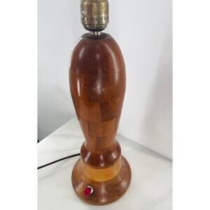Mid-Century Wooden Patchwork Lamp with Red Switch Button