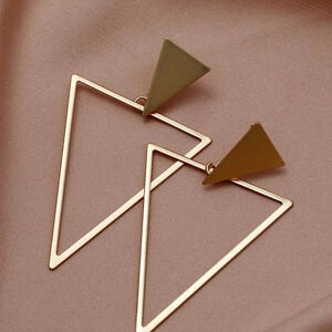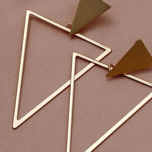 Mid-Century style Triangle Geometric Phenom earrings oversized statement piece brushed gold color