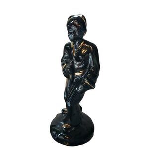 & Vintage Black & Gold Laquer Ceramic Figurine