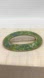 Vintage 1950s Enamel Cooper Oval Brooch in Green. This oval brooch dates from the mid-1950s to early 1960s. The enamel coating features green, yellow, and blue abstract designs. The oval sides have a subtle gold trim. The front is in excellent condition. The back has a gold matte finish with some age tarnishing and minor scratches. The clasp and pin back are in good working condition. Approximate Measurements: Width: 1 15/16” Length: 1 5/16” #vintage #brooch #enamel #midcenturymodern #50s #jewelry