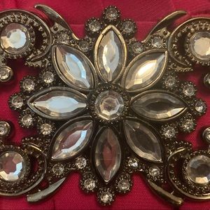 Connects to a wide silky pink ribbon that ties in bck 🎀