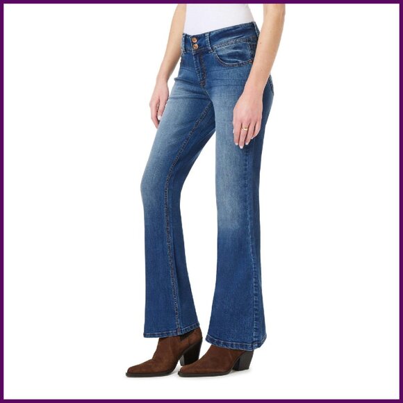 • Style: Mid-rise bootcut jeans with a contoured waistband and a classic double-button closure. Features 5-pocket styling and a perfect kick leg opening for a cool, casual vibe.