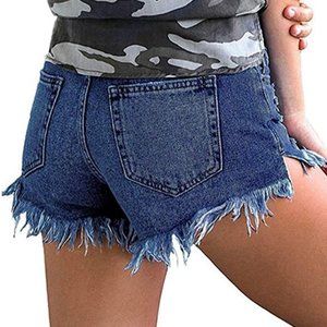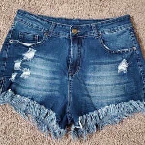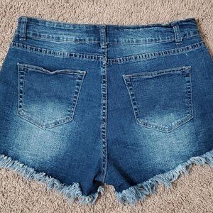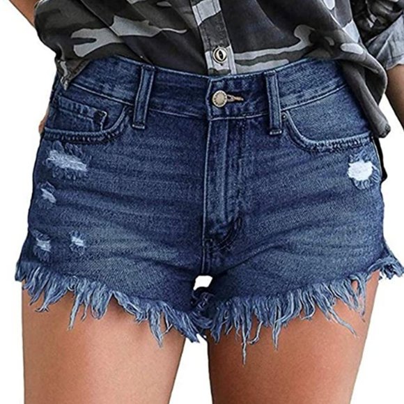 Mid-Rise Distressed Jean Shorts with Frayed Hems