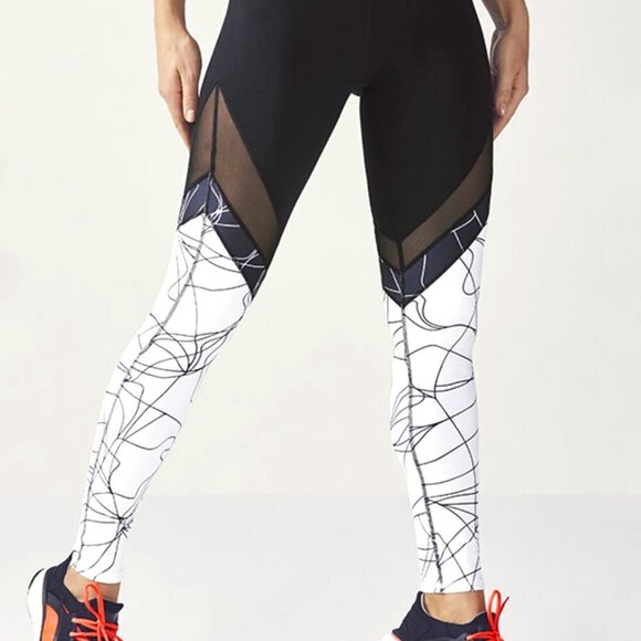 Mid-Rise Mesh Powerhold Legging Black & White w/Mesh - SZ XS